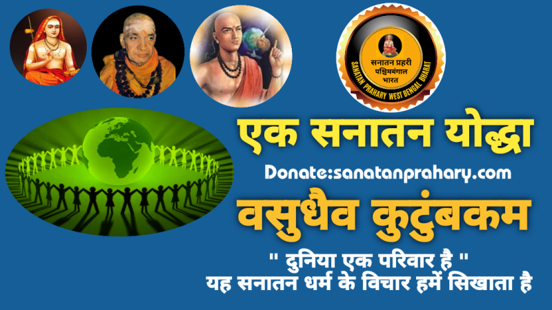 सनातन धर्म की मूल संस्कृति वसुधैव कुटुंबकम हीं है सभी देश एक बड़े वैश्विक परिवार का हिस्सा है, चाहे उनके बीच कितना हीं मतभेद क्यों न हों।भारत का यह प्राचीन दर्शन हमें शांति और सद्भाव कि शिक्षा देता है और सहोदर का लक्ष्य रखते हुए सभी के साथ दयालुता और सम्मान के साथ व्यवहार करना सिखाता है जिसको लेकर सनातन प्रहरी वर्षों से संघर्षरत है, तथा अपने उद्देश्य को सभी तक पहुंचने की समर्थन एवं सहयोग की कामना करता है ।आज की दुनिया में, जहां सब कुछ इतना होने के वावजूद मनुष्य के अंदर आशंतोष पनप रहा है । मनुष्य का नकारात्मक ऊर्जा के साथ अधिक जुड़ाव है । यह फिलोसॉफी और भी महत्वपूर्ण है। हमारी दुनिया एक बड़े सहोदर की तरह है जहाँ राष्ट्रों और संस्कृतियों के बीच की रेखाएँ धुंधली होती जा रही हैं सम्बंध प्रगाढ़ होते जा रहे हैं ।इसलिए, सनातन प्रहरी के लिए वसुधैव कुटुंबकम के सिद्धांतों का पालन करना और एक ऐसी दुनिया के लिए प्रयास करना एक महत्वपूर्ण कार्य है ।सनातन प्रहरी सभी के साथ उचित और सम्मानपूर्वक व्यवहार की कामना करता है एवं सभी से उसकी उमिद भी रखता है।सनातन धर्म के ये सिद्धांत हमें बेहतर भविष्य की ओर मार्गदर्शन करते हैं।योजनाबद्ध टीम वर्क, सहयोग को प्रोत्साहित, एक-दूसरे के प्रति सम्मान ,करुणा,प्रेम ,आस्था को प्रदर्शित करके , हम समस्याओं को सुलझाने में मदद कर सकते हैं।सनातन प्रहरी की सहायता से हम दुनिया को और अधिक संतुलित, शांतिपूर्ण सौहार्द बनाने पर काम कर सकते हैं।सनातन धर्म की वसुधैव कुटुंबकम हमें याद दिलाता है कि प्रत्येक व्यक्ति सभी के लिए एक बेहतर दुनिया बनाने में भूमिका निभाता है।उपरोक्त सभी कार्यों को सनातन प्रहरी आप लोगों के सहयोग से एक विश्व स्तर पर कार्य करने की योजना बनाईं है जिसमें आप की महत्वपूर्ण भूमिका हो सकती है। आप को हमारे साथ इस महासागर के कुंभ में आप का स्वागत किया जा रहा है।अतः सनातन प्रहरी आप लोगों से जुड़ने एवम आर्थिक सहयोग के लिए विनम्र निवेदन करता है।नमस्ते